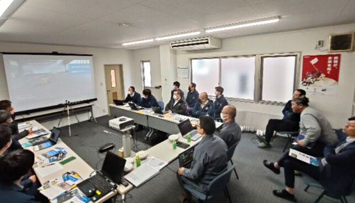 当日は、大井執行役員をはじめ、測量部門の佐藤課長、営業部の浅田課長ほか、総勢16名の皆様にご参加いただき、盛況のうちに開催することができました。本研修は、測量機器および関連製品の販売・レンタルにとどまらず、施工に伴い必要となる各種システムのご提案まで幅広く手掛けておられる埼玉測機社様ならではのご要望により実現したものです。