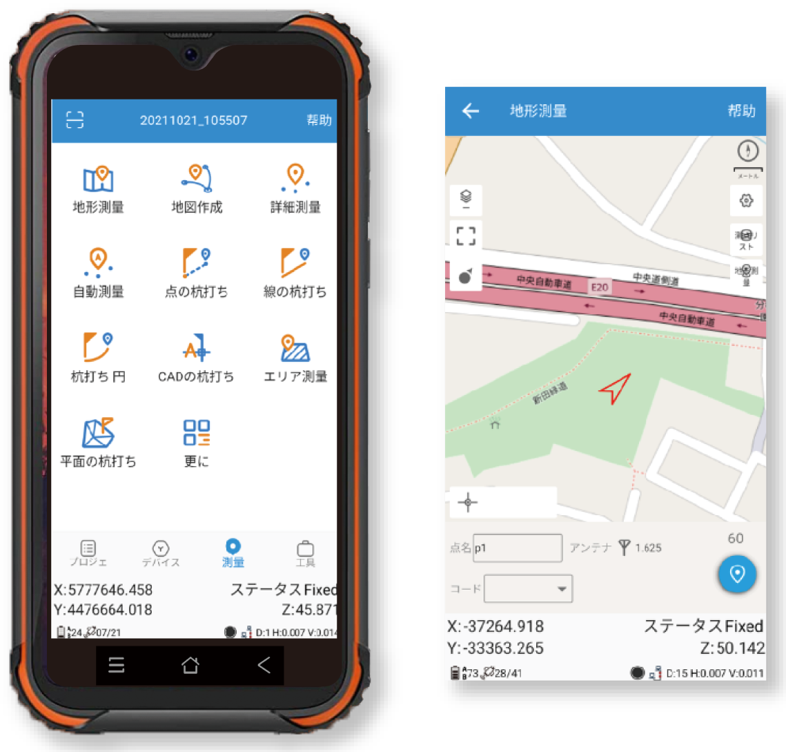 200万画素のフロントカメラ、ボトムカメラを搭載。効率性の高いAR測位とAR杭打ちを実現。夜間モードへの切替えも自動。