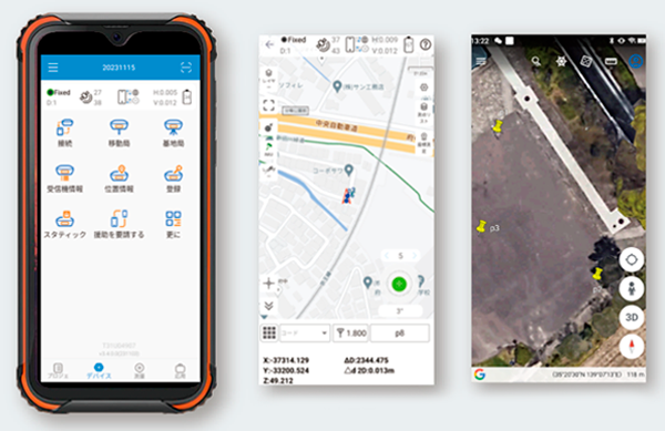 インターネット環境が整ってない場所でも2台の受信機でRTKが可能。特別な免許は不要。