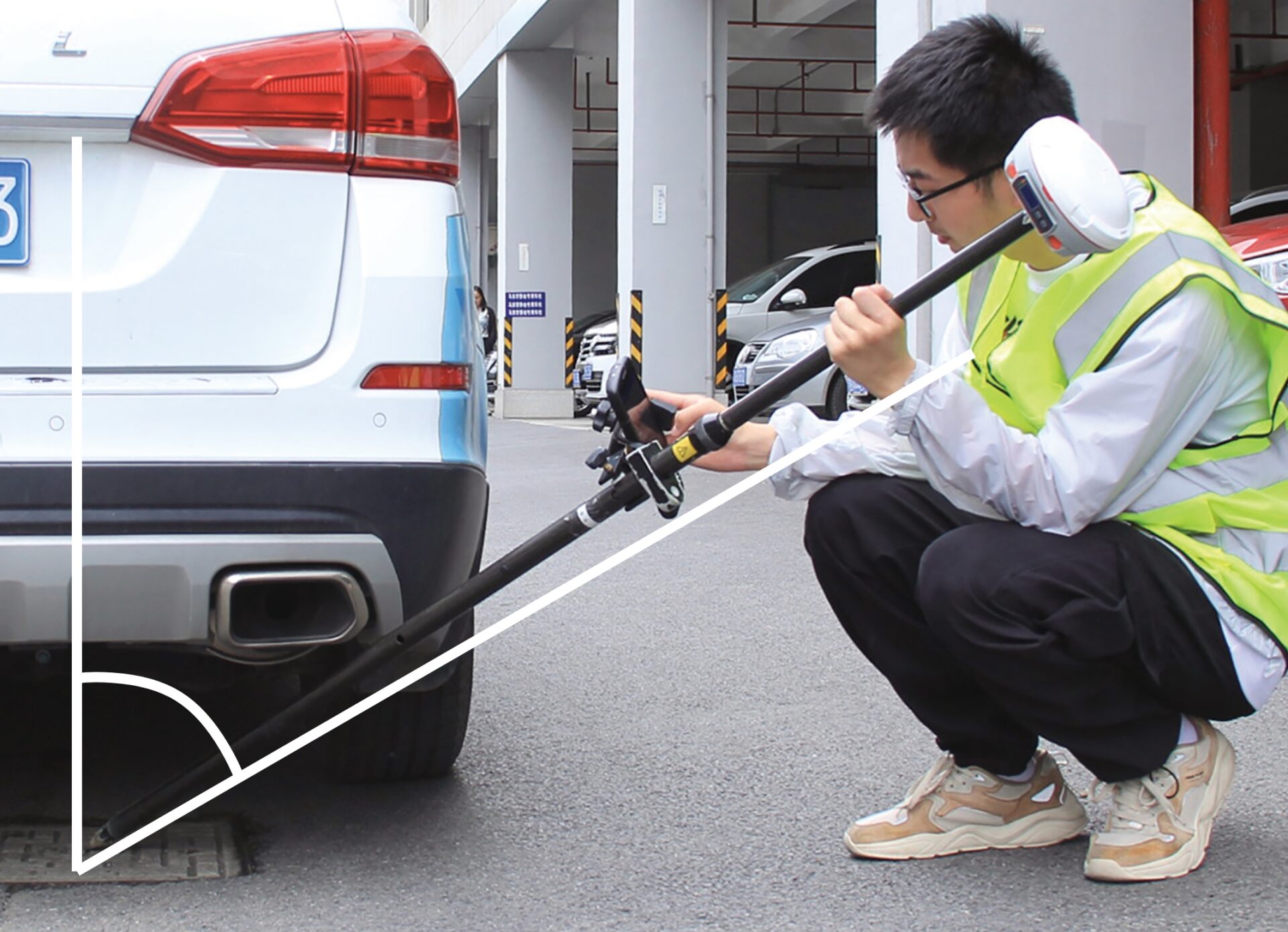 傾斜補正が、磁気センサーからIMU※へ進化し、キャリブレーション作業も簡単かつ10 秒以下で完了。最大60° までの傾き補正が可能。車体の下や障害物のある場所もポールの先端だけをポイントに添えることで測定ができます。多チャンネル化による相乗効果が最大限発揮され、精度は25mm 以下の高精度を維持。作業性が飛躍的に向上します。