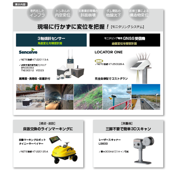 インフラ維持管理ご担当者様へ向けて、現場を省人化する画期的な製品を展示します。